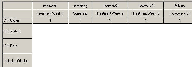 The schedule is a visual display indicating which eForms should be completed at each subject visit. You must arrange the visits and eForms in a way that will best reflect the information that is to be collected. Schedule layouts may vary greatly between studies.