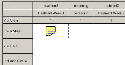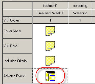 To add an eForm to a visit, click on the schedule at the intersection of the eForm row and the column of the visit in which the eForm should be completed. Click Yes to confirm. A single eForm icon will appear. See image